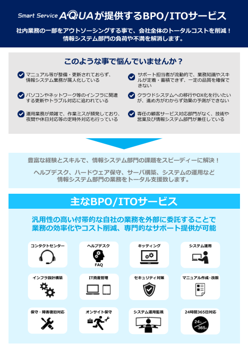 社内業務の一部をアウトソーシングする事で、会社全体のトータルコストを削減!情報システム部門の負荷や不満を解消します。
