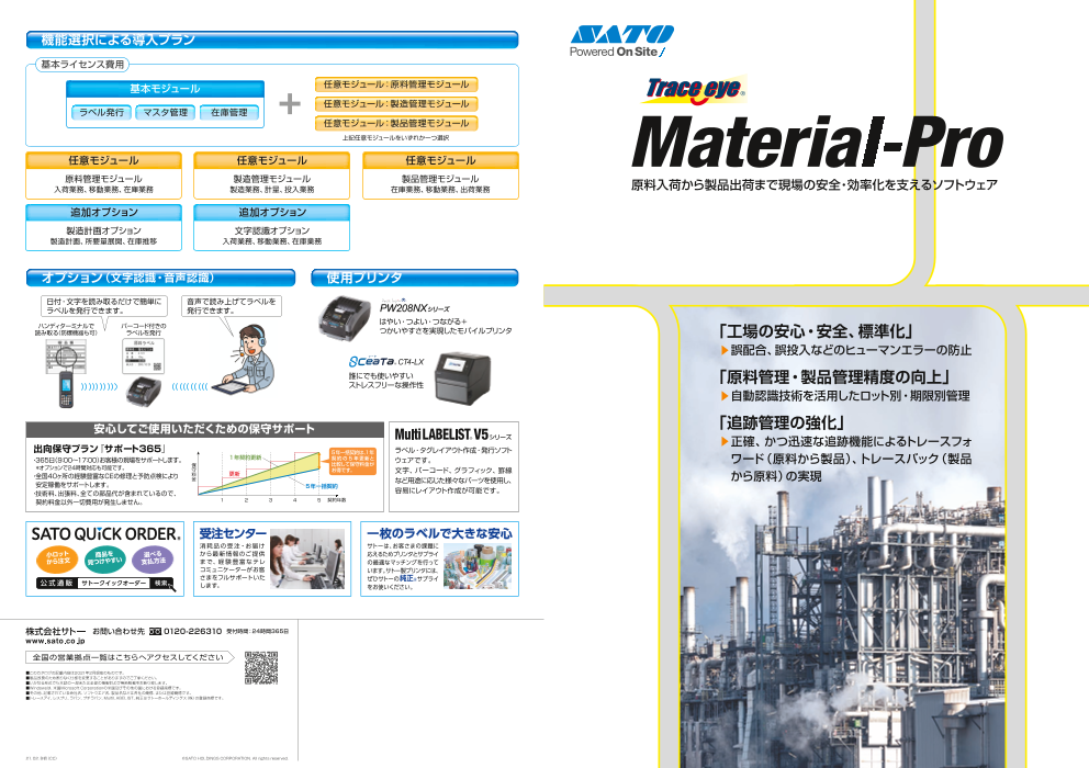 Trace eye Material-Proは、化成品製造工場様における原材料の入庫から製品出荷までのモノの動きを管理し『工場の安心・安全、標準化』『原材料/製品の管理精度向上』『トレーサビリティの構築』を支援する製造管理システムです。原材料入荷から製品出荷まで一気...