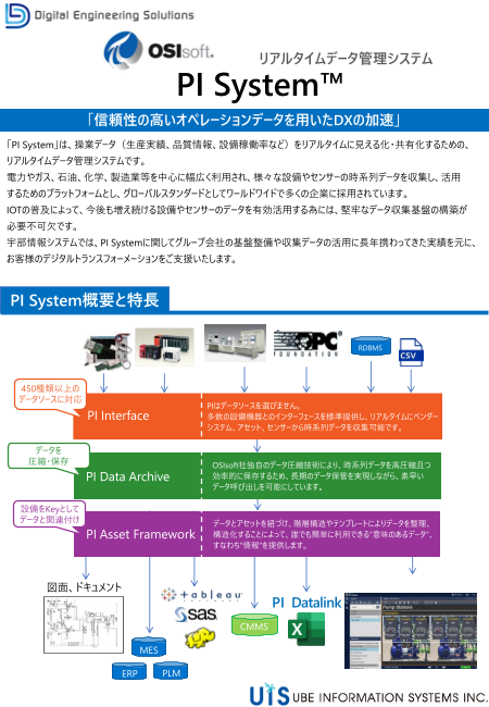 『PI System™』は、操業データ(生産実績、品質情報、設備稼働率など)をリアルタイムに見える化・共有化する為のリアルタイムデータ管理システムです。電力やガス、石油...