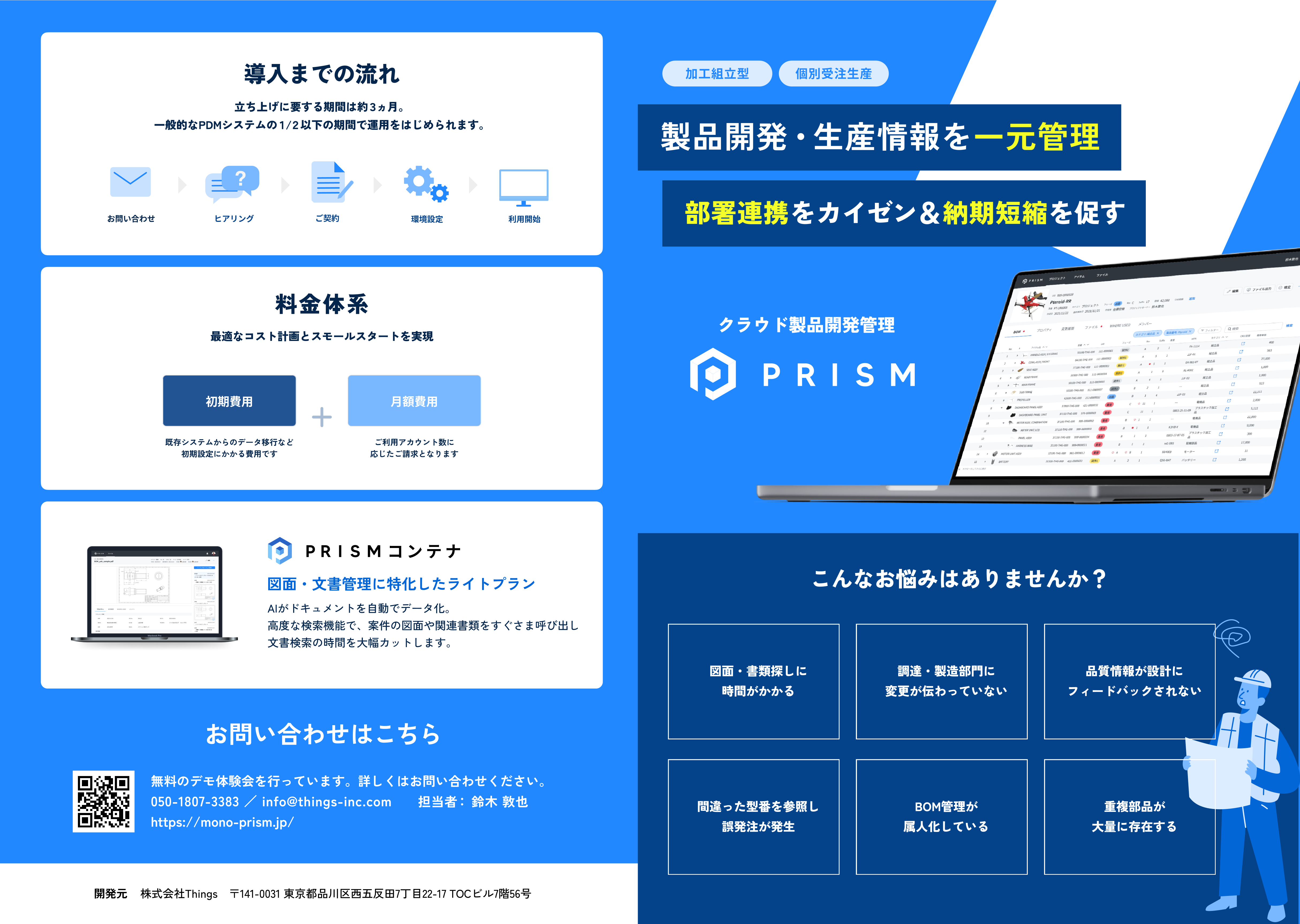 PRISMは、製造業のコミュニケーションエラーを解決するクラウド型製品開発プラットフォームです。部品表(BOM)起点でモノづくりに関する情報を統合されたデータベースに集約し、ブラウザさえあれば設計、製造、調達、物流などすべての部門から閲覧と更新ができます...