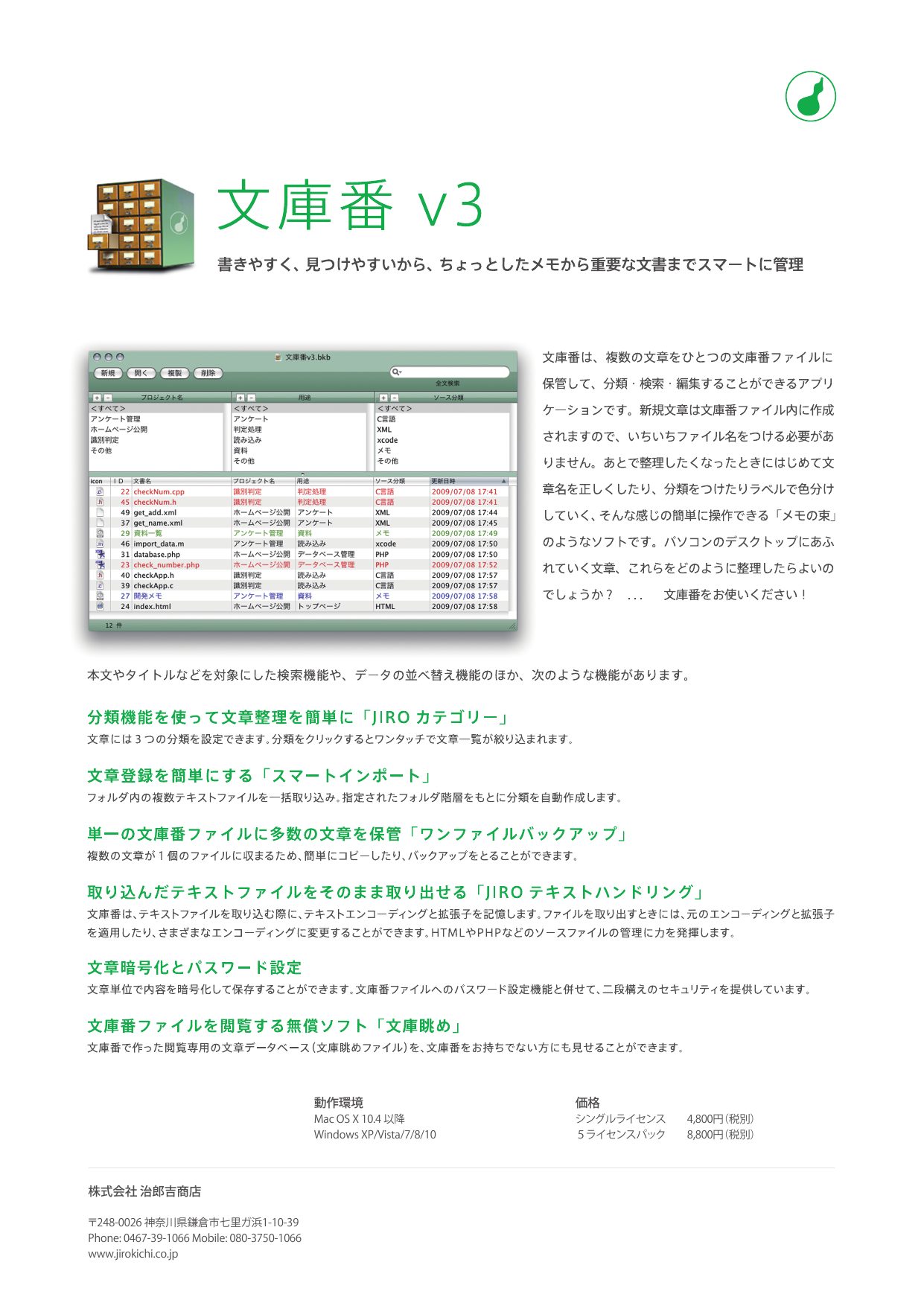 企業や部署内での図書類の管理に人手や時間がかかっていませんか?Jirobookなら、3階層のカテゴリを含む様々なデータ項目で図書やマニュアルなどを効率的に管理できます。