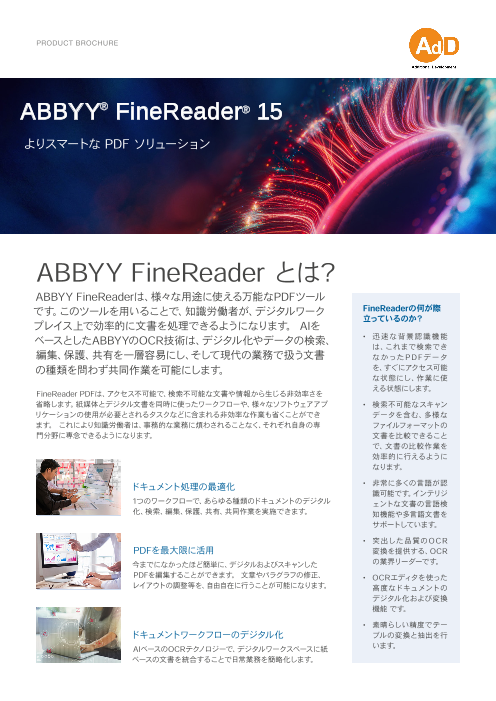 このツールを用いることで、知識労働者が、デジタルワークプレイス上で効率的に文書を処理できるようになります。AIをベースとしたABBYYのOCR技術は、デジタル化やデータの...