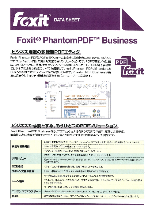 Foxit PhantomPDFはPDF文書やフォームを安全に取り扱うことができる、ビジネスプロフェッショナル向けの費用対効果の高いソリューションです。PDFの表示、作成、編集、コラボレ...