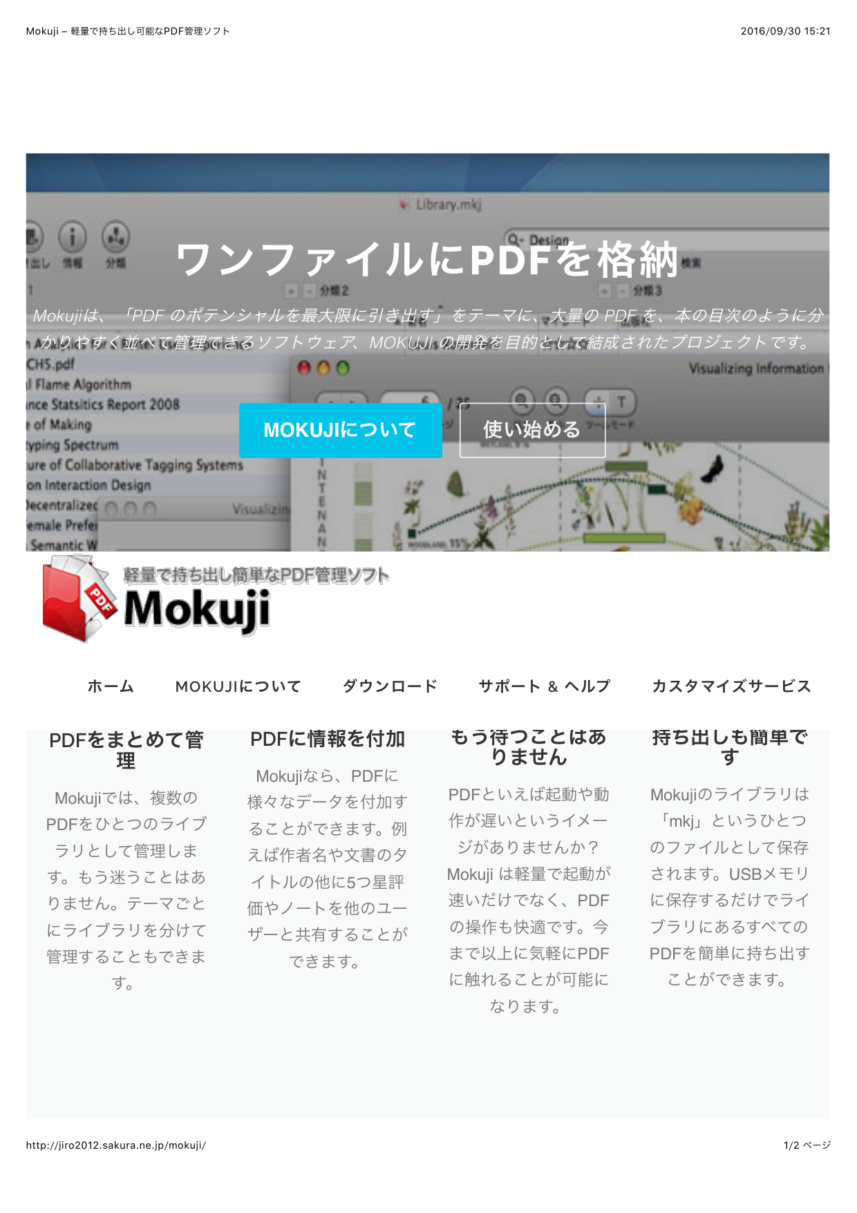 ワンファイルに PDF を格納Mokujiは、「PDF のポテンシャルを最大限に引き出す」をテーマに、大量のPDF を、本の目次のように分かりやすく並べて管理できるソフトウェア、MOKU...