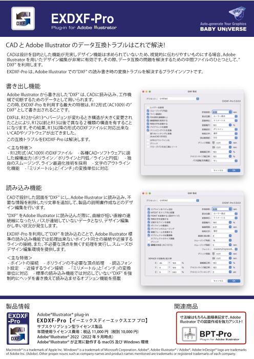 EXDXF-Pro は、Adobe Illustrator での”DXF” の読み書き時の変換トラブルを解決する...