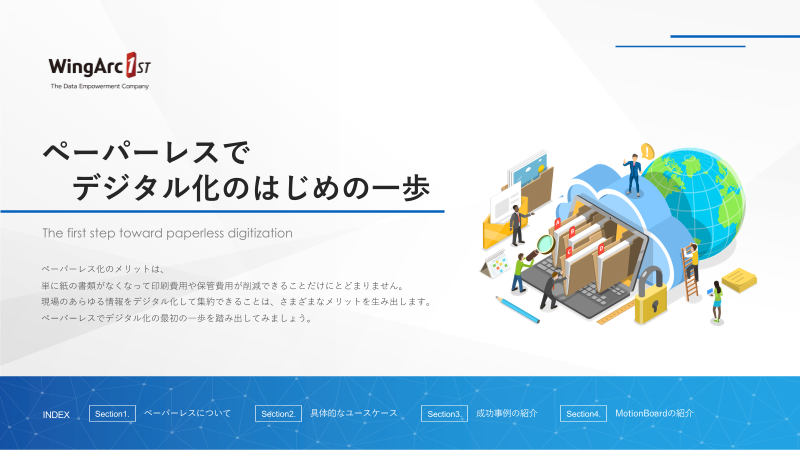 ペーパーレス化のメリットは、単に紙の書類がなくなって印刷費⽤や保管費⽤が削減できることだけにとどまりません。現場のあらゆる情報をデジタル化して集約できることは、さまざまなメリットを⽣み出します。ペーパーレスでデジタル化の最初の⼀歩を踏み出して...