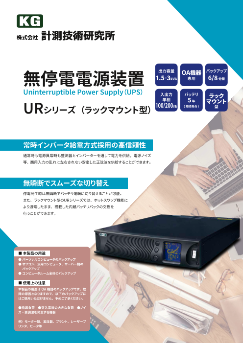 URシリーズは高効率コンバータを搭載したOA機器電源バックアップ用に最適なラックマウント型の常時インバータ給電方式無停電電源装置です。出力容量は1.5kVA~3kVAの小型容量を...