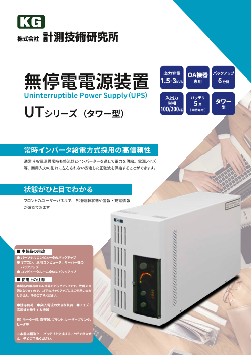 UTシリーズは高効率コンバータを搭載した主パソコン、サーバー、コンピュータルームなどのOA機器電源バックアップ用に最適なタワー(据置)型の常時インバータ給電方式無停電電源...