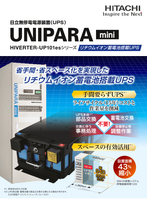 ◆手間要らずUPS:ライフサイクル(15年)コストと作業量を削減 UPS本体部品交換不要 蓄電池交換不要 交換に伴う事務処理不要 設備停止等調整作業不要◆スペース...