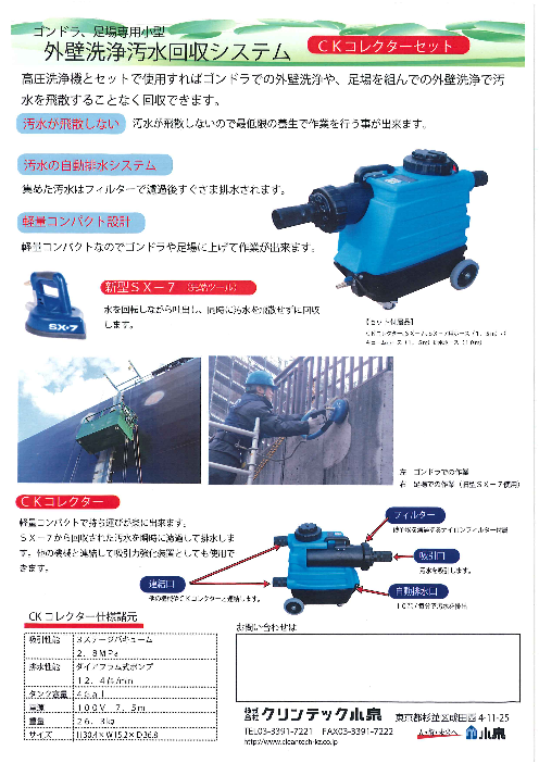 ◆汚水が飛散しないので、最低限の養生で作業を行う事が出来ます。◆汚水の自動排出システム 集めた汚水はフィルター濾過後すぐさま排水されます。◆軽量コンパクト設計 ...