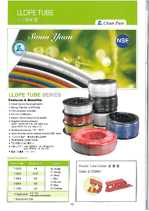 Swan Yuanエンタープライズ (台湾)のL-LDPE TUBE (リニアポリエチレン チューブ、直鎖状低密度ポリエチレン チューブ)のカタログです。Swan Yuanエンタープライズは、台湾のL-L...