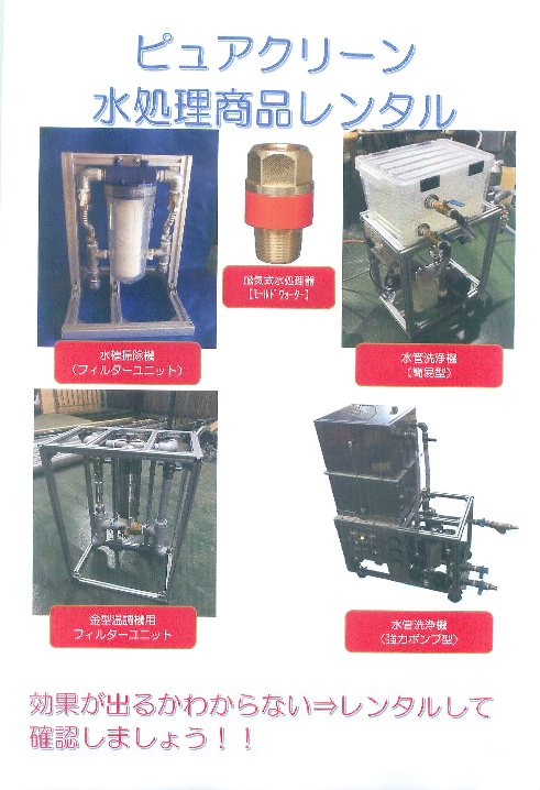 絶縁破壊方式の電気分解により、クーリングタワー、チラー循環冷却水内のスケールを除去します。スケールを除去することにより、電気代、水道代、メンテナンス費用を削減しま...