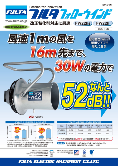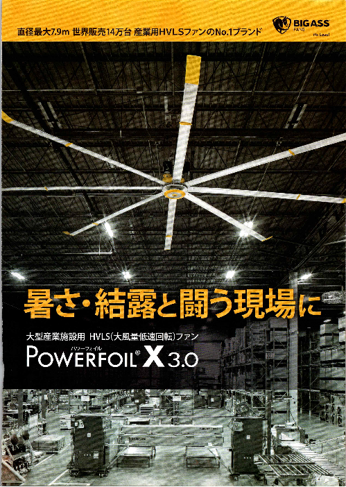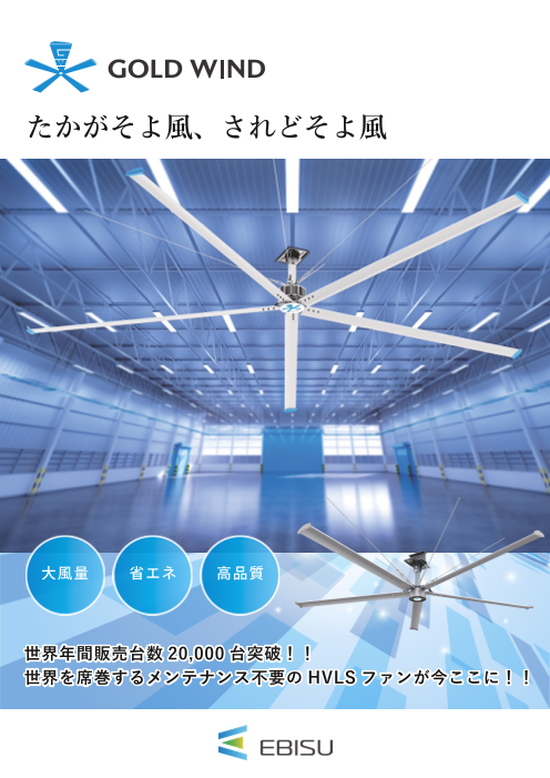 カタログ内容:HVLSファンとは・・・High Volume「大風量・大容量」Low Speed「低速回転」の天井ファンで、航空技術を応用した巨大な羽根を低速回転させ、広域空間に大容量の空...