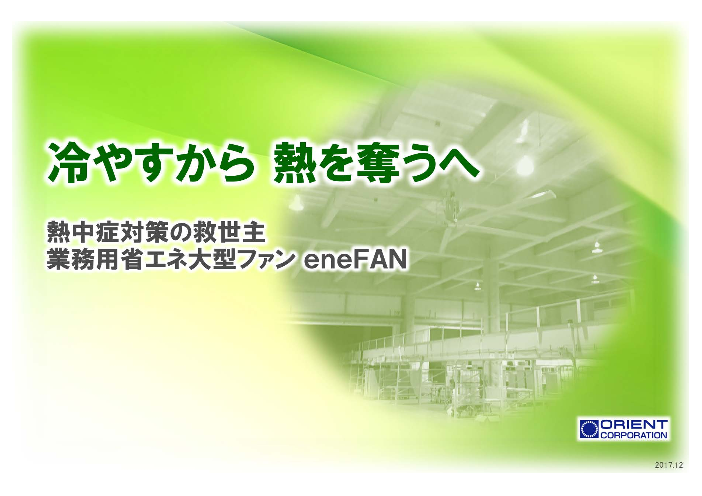 ・eneFANとは、最大直径7.3mの省エネ大型ファンです。・羽根をゆっくり回転させ、広大な空間に空気の流れをつくります。・快適な室内環境を提供します。・風をつくり、熱...