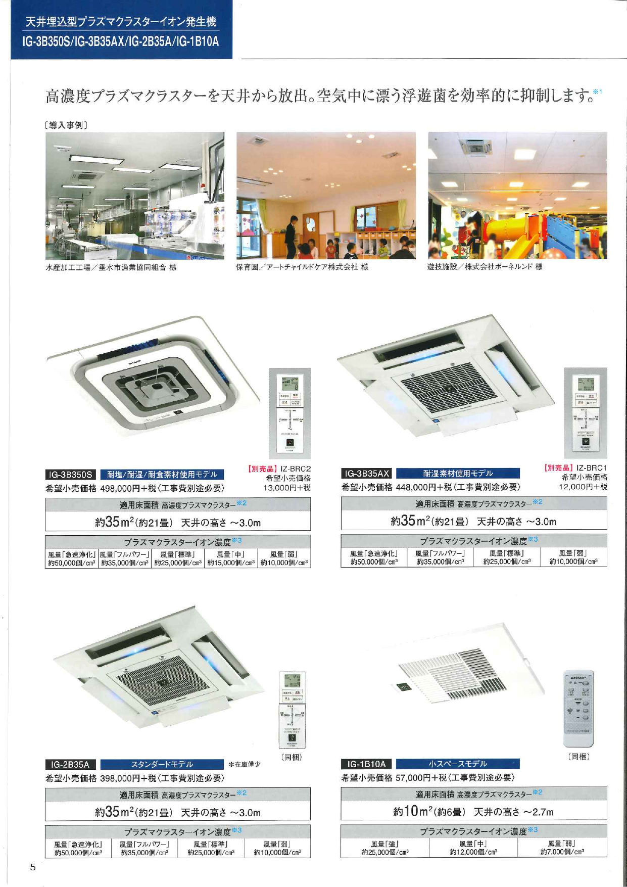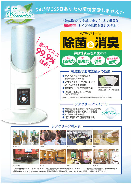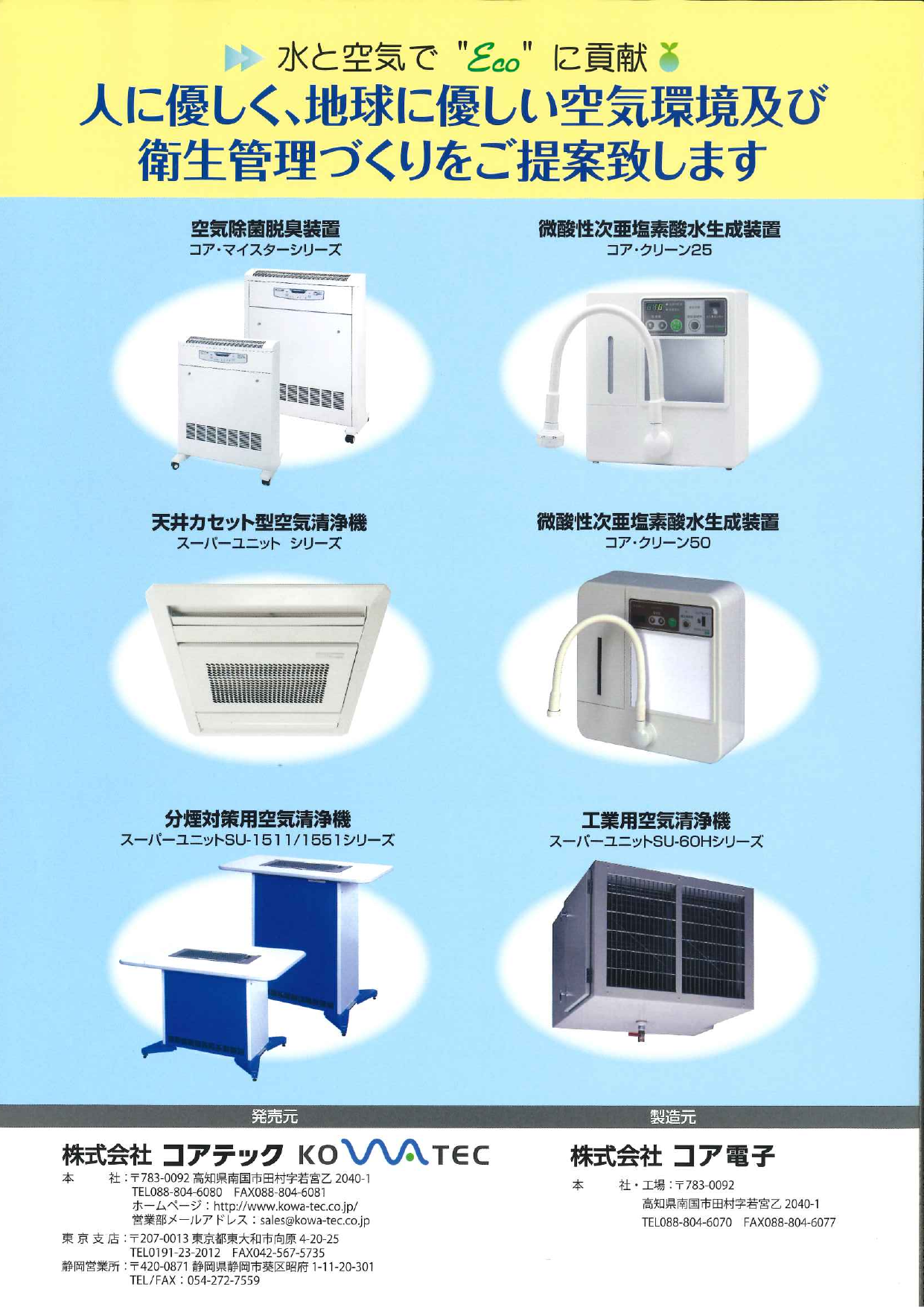 ◇掲載製品・空気除菌脱臭装置・天井カセット型空気清浄機・分煙対策用空気清浄機・微酸性次亜塩素酸水生成装置・工業用空気清浄機