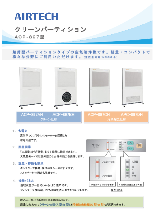 床置型クリーンユニットは工事不要で室内に清浄空気を供給する装置です。