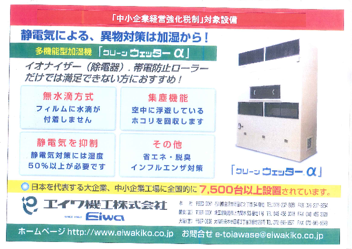静電気による、異物対策は加湿から