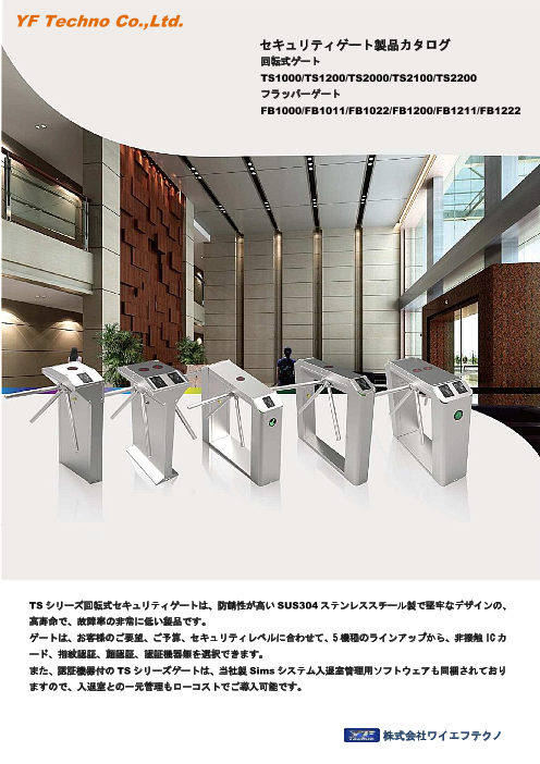 【掲載内容】○TSシリーズ回転式セキュリティゲート 防錆性が高い SUS304 ステンレススチール製で堅牢なデザインの 高寿命で、故障率の非常に低い製品です。 ○FB シリ...