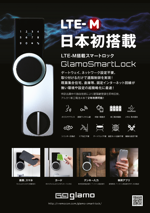 今回、グラモが発売する『Glamo Smart Lock for LTE‐M』は、日本で初めて携帯通信キャリアの提供するLTE-M回線に直接接続できる通信機能を有しており、携帯電話のLTE電波が届く...
