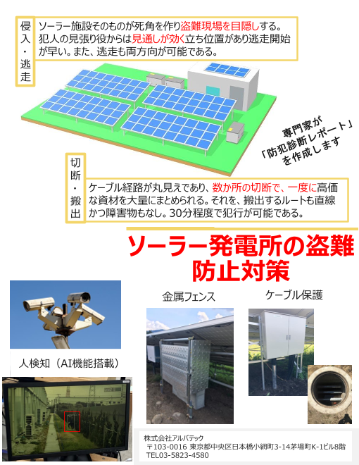 人検知(AI機能搭載)金属フェンスケーブル保護太陽光発電で地域の未来を創るお手伝いを。アルバテックは地域の未来を創るお手伝いをします。私達はモノを売るだ...