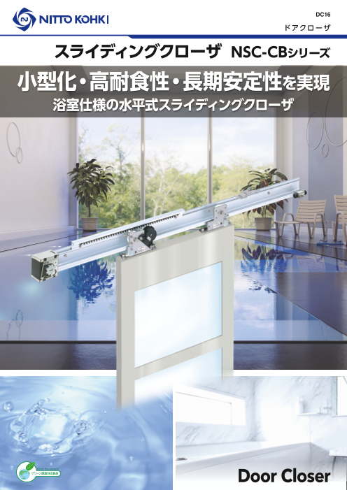 スライディングクローザは小さな力でも軽く開き、好みのスピードで静かに確実に閉まる引き戸専用のクローザです。NSC-CBシリーズは、ステンレス部材とシール構造の採用で...