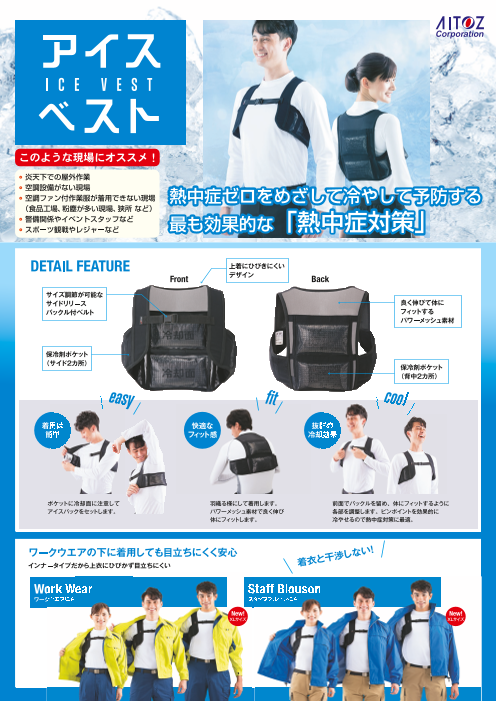 本格的な夏を迎える前に万全の熱中症対策が必要です。熱中症対策ウェアとして、ベストに保冷剤を装着して静脈部分を冷却することで体温を下げる「アイスベスト」をご紹介しま...
