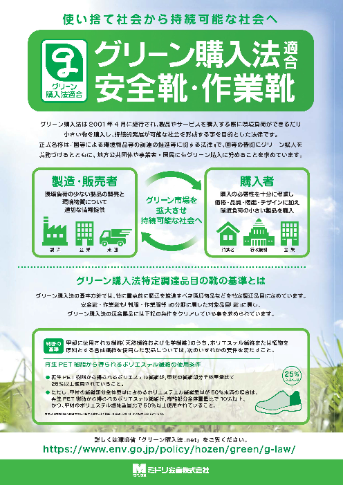 ●グリーン購入法特定調達品目の靴の基準とは●ミドリ安全のグリーン購入法適合安全靴・作業靴 など詳細はダウンロードしてご確認ください!