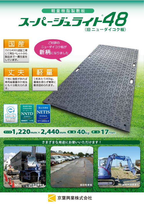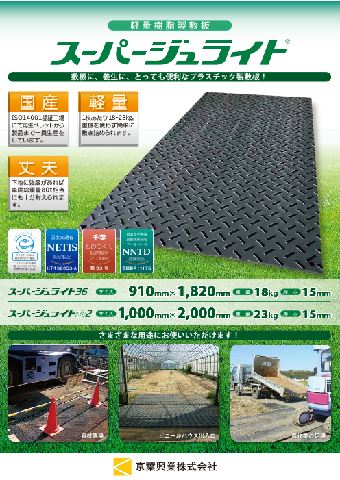 敷鉄板に代わる再生ポリエチレン樹脂製敷板柔軟性と強度を両立した環境にやさしい樹脂製敷板・スーパージュライト48・スーパージュライト36・M2・ジュライト6・10・ス...
