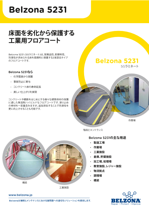 Belzona 5231(SGラミネート)は、耐薬品性、耐摩耗性、防滑性が求められる床を長期的に保護する2液混合タイプのフロアコートです。・化学腐食から保護・事故防止に寄与・...