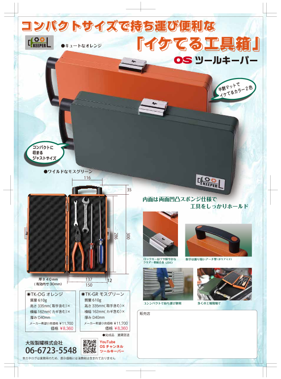 半艶マットでイケてるカラー2色。キュートなオレンジとワイルドなモスグリーン。コンパクトに収まるジャストサイズ。内面は両面凹凸スポンジ仕様で工具をしっかりホールド。ロ...