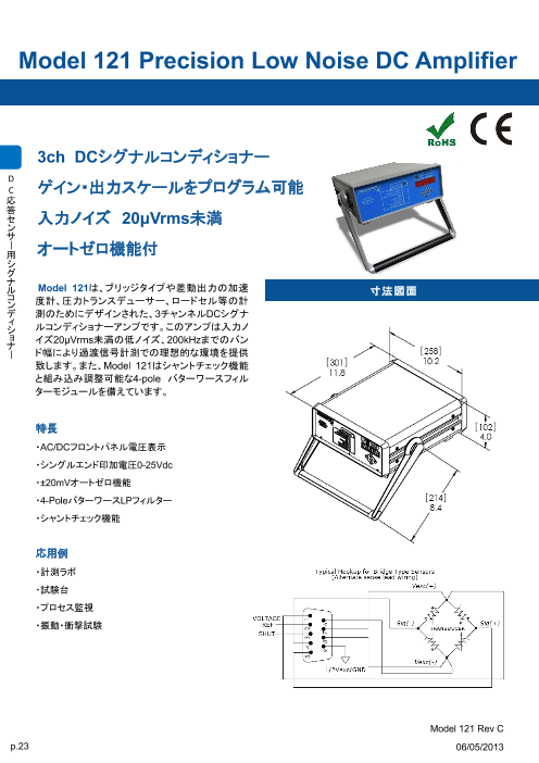 Model 121 Precision Low Noise DC Amplifier・ゲイン・出力スケールをプログラム可能・入力ノイズ 20μVrms未満の低ノイズ・オートゼロ機能付・AC/DCフロントパネル電圧...