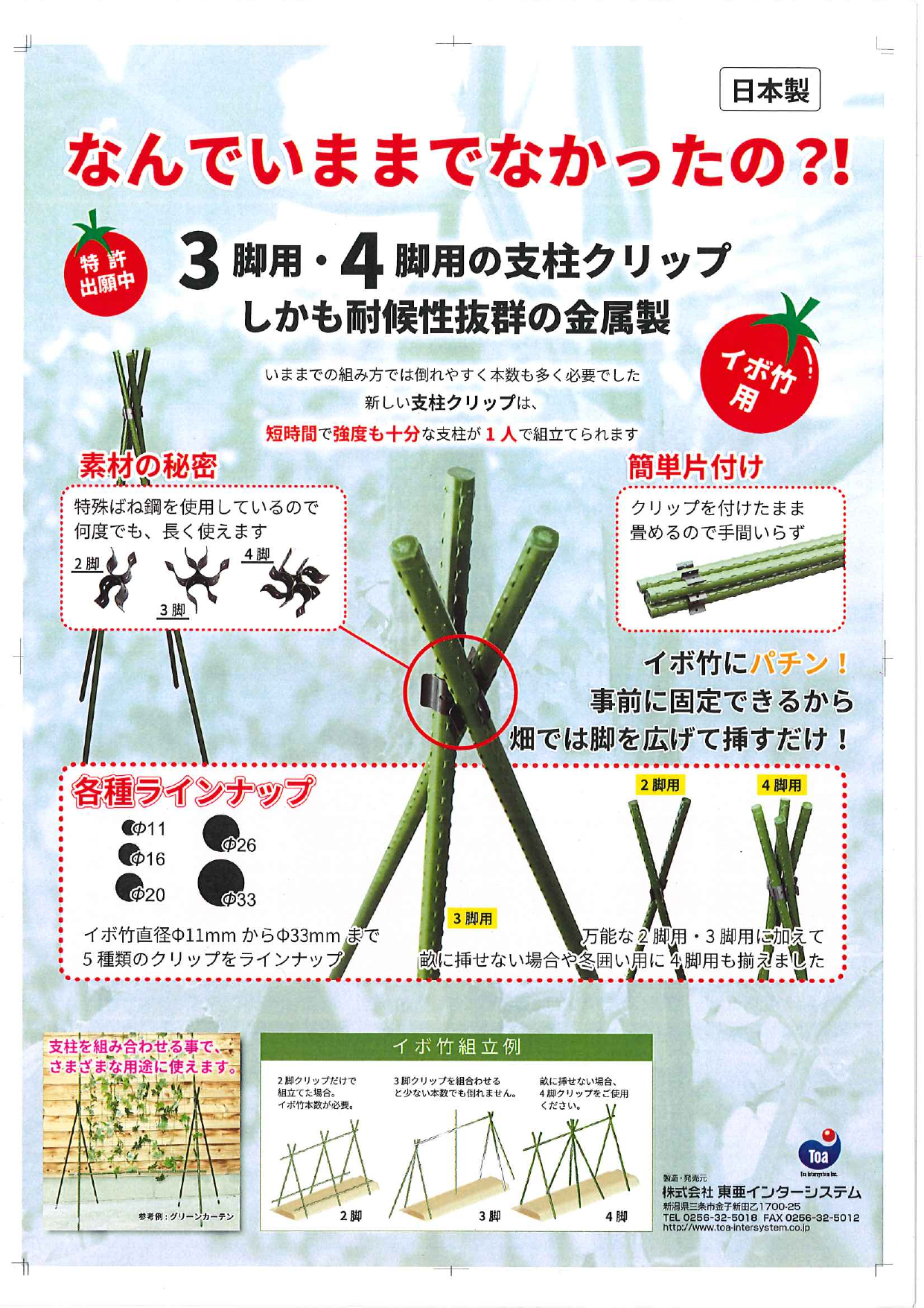 ・3脚用、4脚用支柱クリップ・押し切り包丁