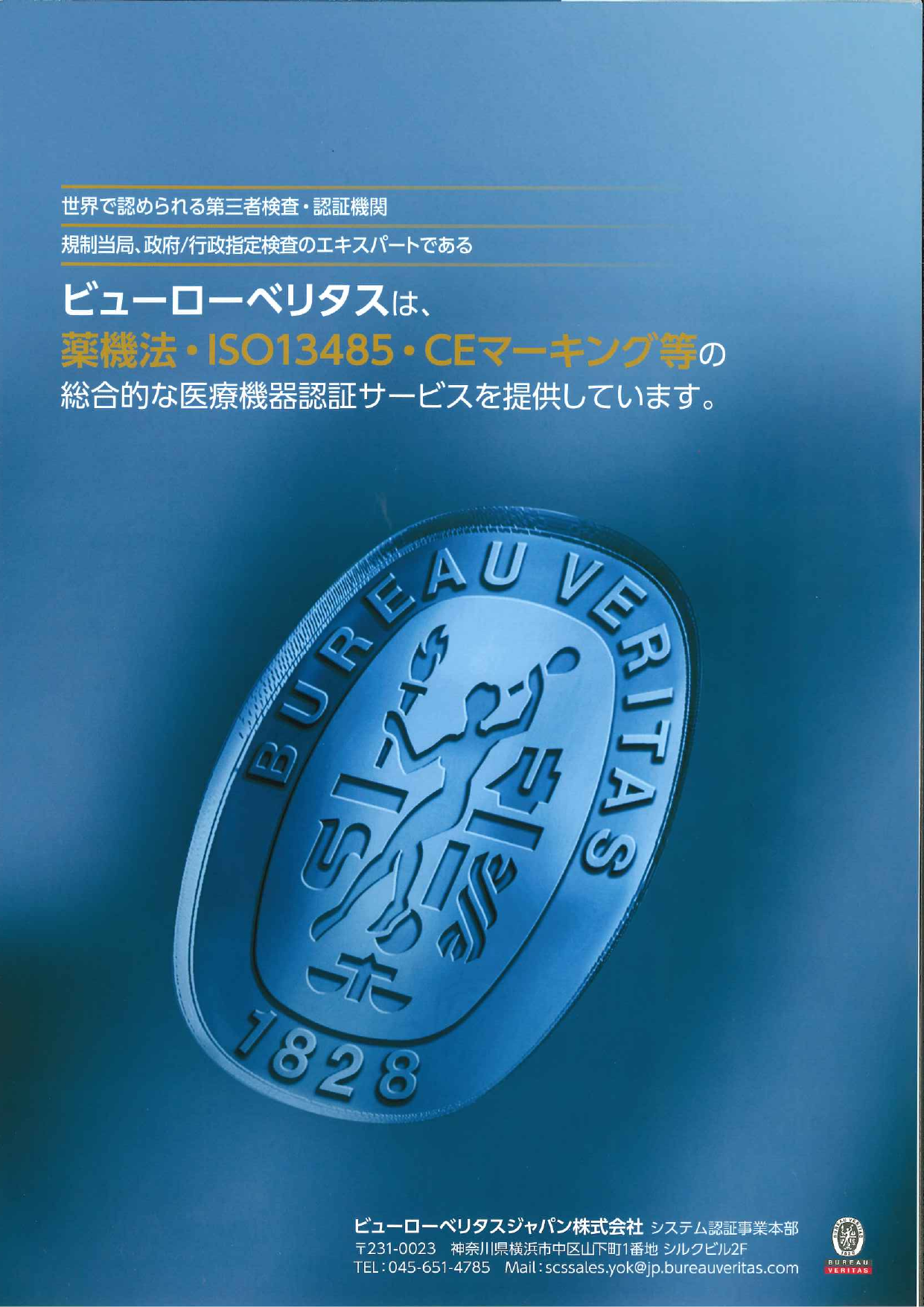 ビューローベリタスは、薬機法に基づく医療機器認証業務、ISO13485認証、医療機器CEマーキングの認証業務など、総合的な医療機器認証サービスを提供する世界最大級の認証機関で...