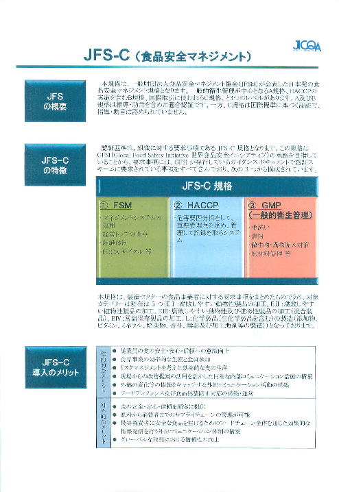 JFS-C(食品安全マネジメント) カタログのご案内です