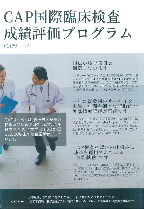 幅広い検査項目を網羅しています。一年に複数回のサーベイを実施、年間を通じて経時的な外部精度管理が可能です。CAP検査室認定の仕組みに基づき運用されている”技能試験”で...