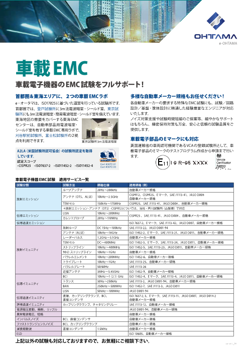 電気・電子機器の製品化や国内外へ送り出す際に必要とされるEMC対策。e・オータマは、電磁波の影響を測定する「EMC試験」を行う会社です。私たちのサービスは、さまざまな分野で...