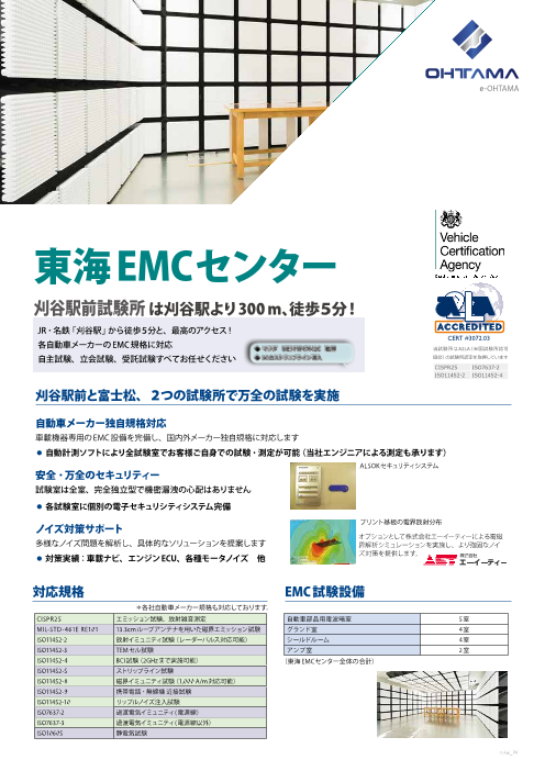 ・自動車メーカー独自規格対応・自動計測ソフトにより全試験室でお客様ご自身での試験・測定が可能・安全・万全のセキュリティー・各試験室に個別の電子セキュリシティシ...