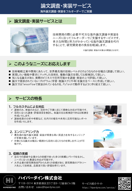 技術開発の際に必要不可欠な海外論文調査や実装をニーズに沿ってフルオーダーでご支...