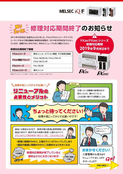 残り3ヶ月!FX2N/FX2NCシリーズマイクロシーケンサおよび周辺機器の修理対応期間...