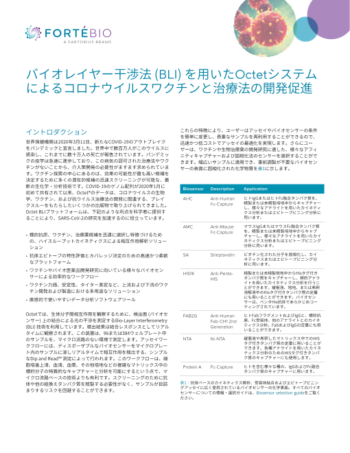 バイオレイヤー干渉法 (BLI) を用いたOctetシステム によるコロナウイルスワクチンと...