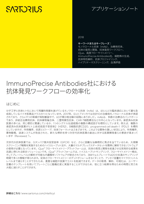 分子工学と抗体ヒト化において飛躍的発展を遂げているモノクローナル抗体(mAb)は、ほとんどの臨床適応において急成長しているバイオ医薬品クラスの1つとなっています。当アプリケーションノートでは、ImmunoPrecise Antibodies社が抗体発見プロセスでどのように...