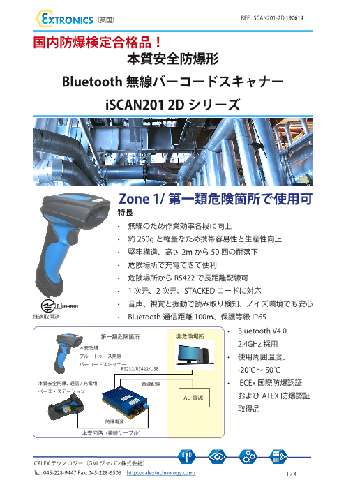 • 無線のため作業効率各段に向上• 約 260g と軽量なため携帯容易性と生産性向上• 堅牢構造、高さ 2m から 50 回の耐落下• 危険場所で充電できて便利• 危険場所から ...
