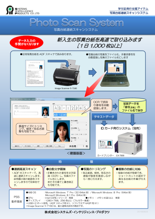 ◆連続高速スキャン ◆自動文字認識 ◆写真のトリミング◆複数の台紙に対応 ◆詳細はカタログをダウンロードしご覧いただくか、お気軽にお問い合わせ下さい。