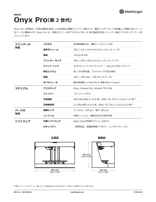 本カタログでは、連続グラスファイバー強化パーツ用の本格的な3D プリンターOnyx Proの紹介をしています。特徴は、手頃な価格を追求した当社独自の連続ファイバー強化です。...