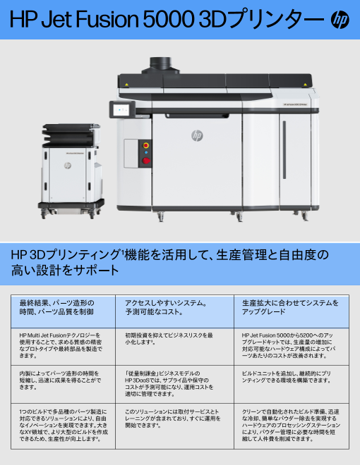 HP独自のMulti Jet Fusion (MJF) テクノロジ―方式3Dプリンターのハイエンドモデル。...