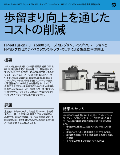 HP Multi Jet Fusion 3Dプリンティング技術で、お客様がアディティブマニュファクチ...