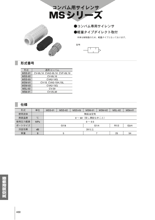 ・軽量タイプダイレクト取付 本体は樹脂製のため、軽量タイプとなっております・使用流体 無給油空気・周囲温度 0~60℃(但し凍結なきこと)◆詳細はカタログをダウン...