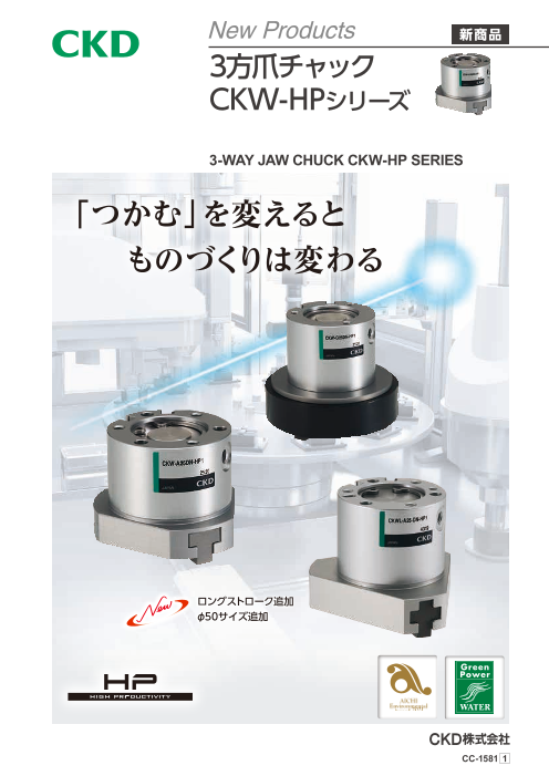 薄形、軽量コンパクトモデルの3方爪チャックがHPシリーズとして進化しました。高把持力と繰り返し精度±0.01mmを維持しながら、ハンドリング工程の長期安定稼働に貢献します...