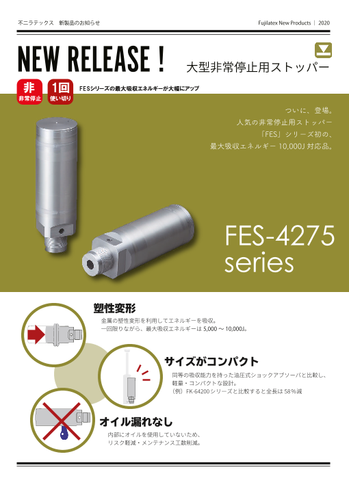 ついに、登場。人気の非常停止用ストッパー「FES」シリーズ初の、最大吸収エネルギー...