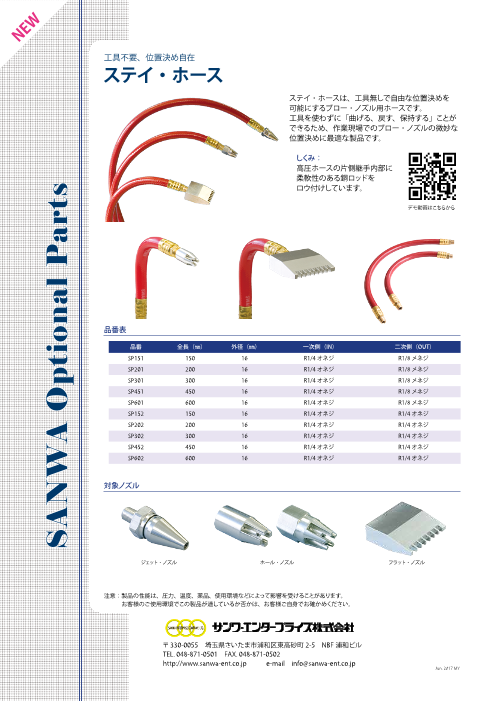 工具を使わずに「曲げる、戻す、保持する」ことができるため、作業現場でのブロー・ノズルの微妙な位置決めに最適な製品です。●工具不要、誰でも自由に位置決めが可能●曲げ...
